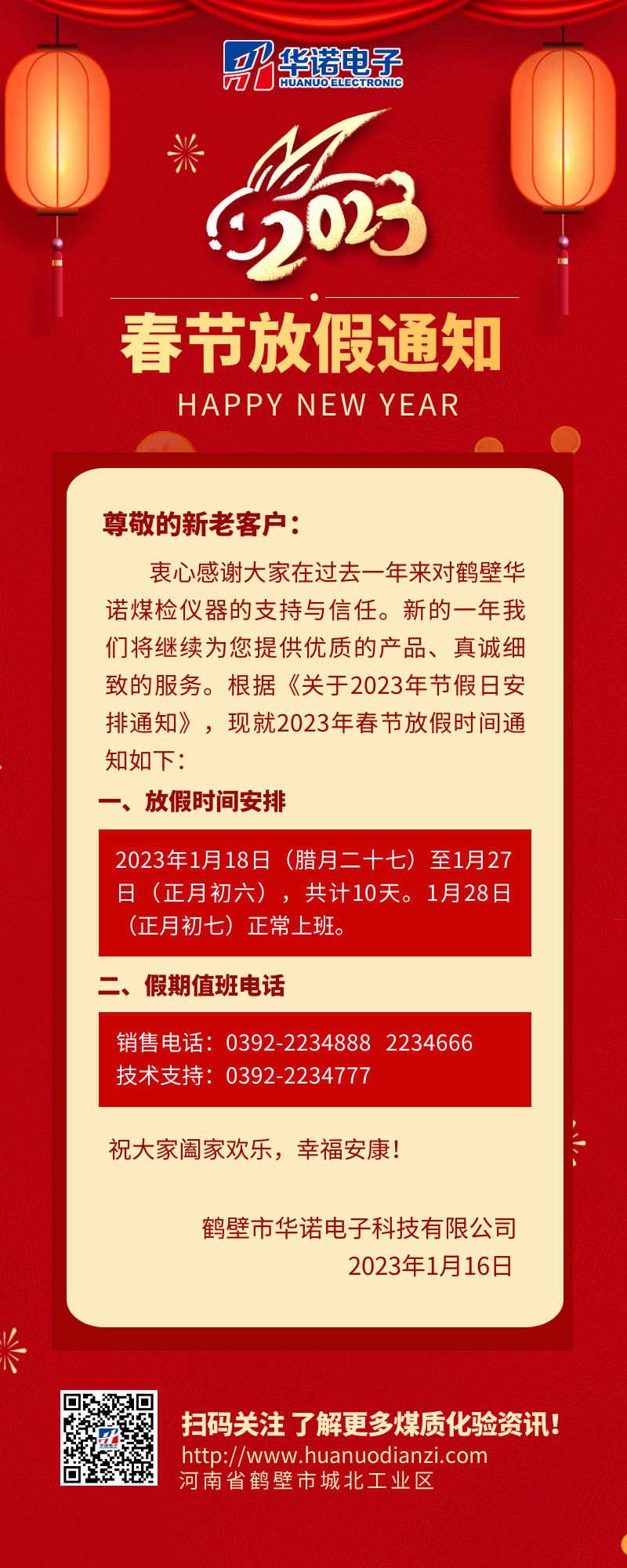 【華諾電子 | 放假通知】華諾煤檢儀器 春節(jié)放假通知!