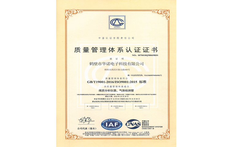 質(zhì)量管理體系認(rèn)證證書(英文)